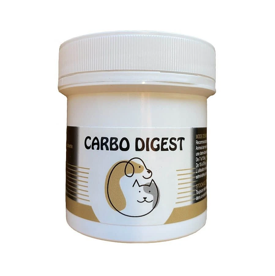 Carbo Digest de chez Obione est un aliment complĂ©mentaire en poudre utilisĂ© chez le chien et le chat.Â
