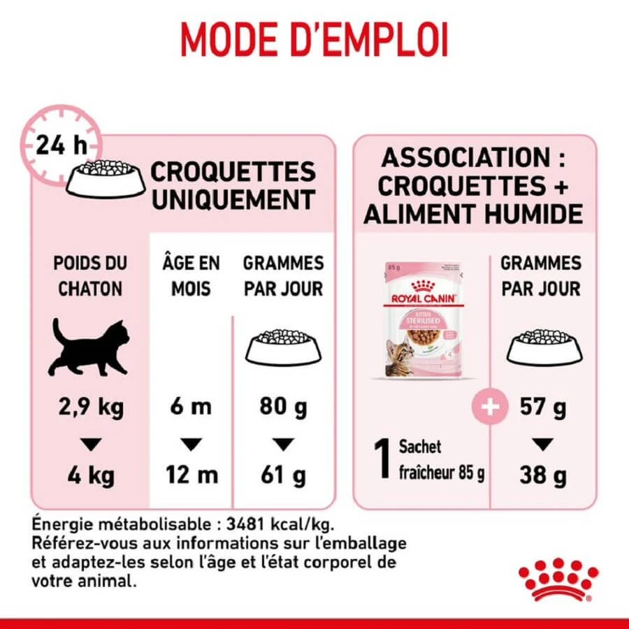 Royal Canin Feline Health Nutrition Kitten Sterilised est une alimentation complète pour les chatons stérilisés de 6 à 12 mois.