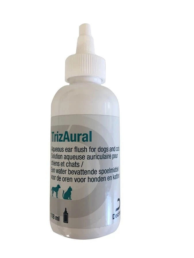 TriZaural est une solution antibactérienne alcalinisante pour le nettoyage du conduit auriculaire et ou pour pré-traitement avant l’application d’un traitement auriculaire spécifique, particulièrement lorsque des gram négatifs ont été identifiés lors de l’examen cytologique